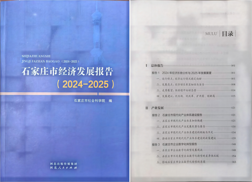 在服务地方经济实践方面,田学斌主持的《石家庄市经济发展报告(2024-2025)》项目、石家庄市政府智库委托项目《推动制造企业智能制造装备升级的可行性政策研究》,围绕市委、市政府中心工作,为现代化、国际化美丽省会城市建设提供决策参考。