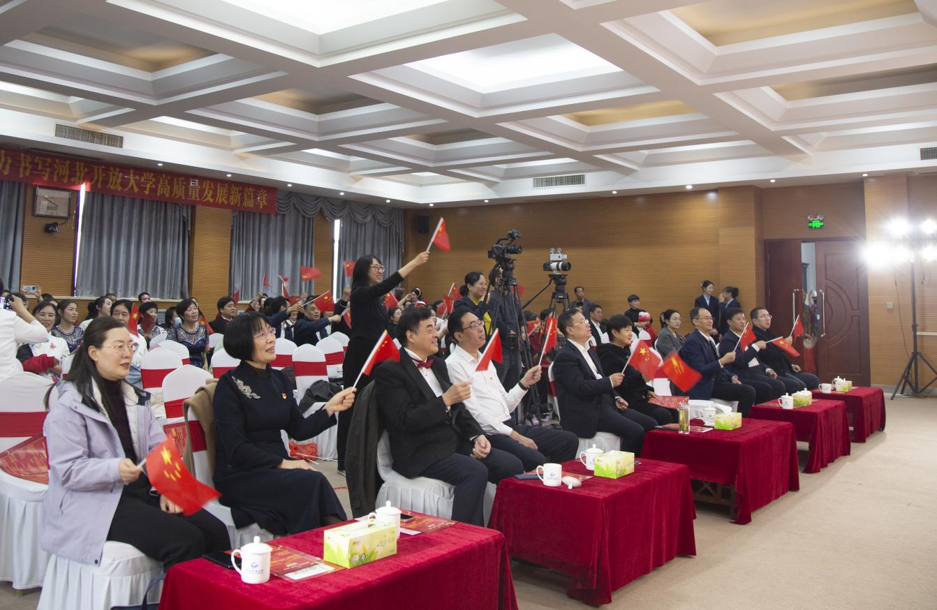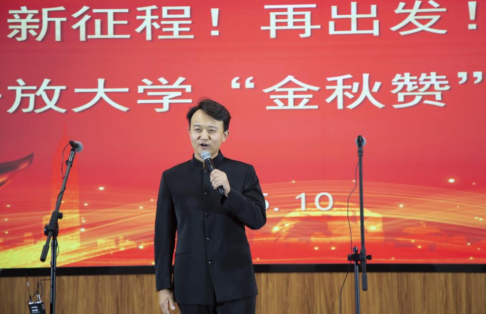 校长致辞明初心,歌声未起情先燃。田学斌在致辞中首先代表学校党委向特邀出演的青年管理干部学院的教师、老年教育学员团队,以及参加活动的教职工致以诚挚问候与感谢。他指出,学校举办“金秋赞”主题歌咏活动,满怀深情为党颂歌、为祖国礼赞、为时代喝彩,是奏响擘画“十五五”规划蓝图、推动学校高质量发展的奋进乐章,是一堂精心举办的“大思政课”、一次集体的主题党日活动。他指出,“十四五”期间,河北开放大学坚持党建引领,坚持依法治校,凝心聚力、砥砺前行,在学历继续教育和非学历教育、体系建设、科研成果转化和数智赋能等各方面取得可喜成绩。他强调,开启“十五五”新征程,全体教职工要始终牢记“为党育人、为国育才”的初心使命,锚定奋斗目标,将爱党、爱国的满腔热情、团结奋进的向上精神,转化为推动学校各项事业高质量发展的生动实践,为教育强国、经济强省、美丽河北建设贡献更多开大力量。