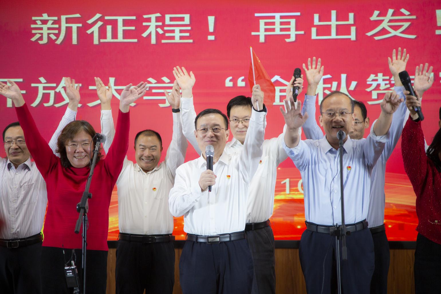 “奋进篇”:砥砺再前行,开新谱华章。5位来自不同党支部、部门的青年教师的诗朗诵《金秋赞歌——致河北开放大学》响彻全场。他们用真挚的声音,回溯着河北开放大学扎根燕赵大地的奋斗足迹,细数着学校事业蒸蒸日上的亮眼答卷,更描绘出学校发展蓝图里的动人场景,既是对学校践行终身教育使命的深情礼赞,更是对开大人乘势而上再创伟业的坚定期许。