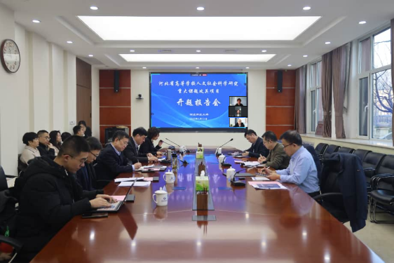 2026年1月15日上午,由我校党委副书记、校长,首席专家田学斌研究员牵头的河北省高等学校人文社会科学研究重大课题攻关项目——“河北省‘环京津康养带’建设与银发经济产业集群培育研究”开题报告会在敬学楼一楼会议室成功举行。受河北省教育厅委托,会议由我校组织,以线上线下相结合形式召开。河北省教育厅科技处副处长张建荣线上参会指导,我校党委常委、副校长陈军平出席会议。