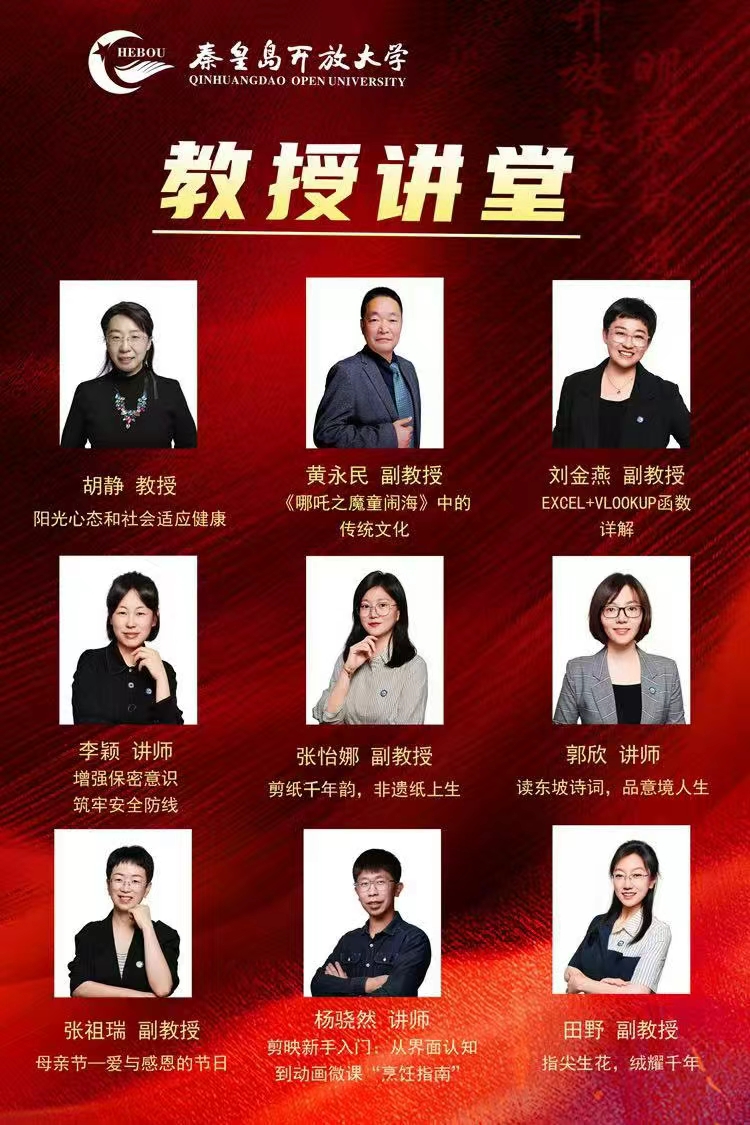 2025年5月至9月,秦皇岛开放大学成功举办第二届教授讲堂暨学生第二课堂系列活动,期间共开展9场主题讲座,覆盖文化传承、数字技能、国家安全教育、心理健康、课程思政等领域,活动以终身学习为核心,聚焦传统文化创新传承与现代技能深度赋能两大主线,打造了具有开放大学特色的学术文化品牌。