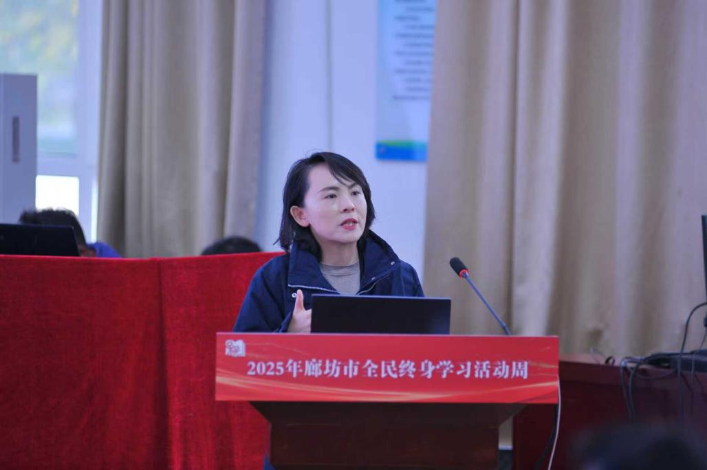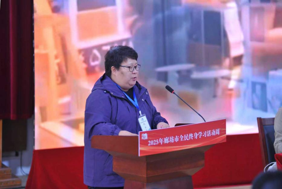 在典型经验分享环节,廊坊市图书馆、固安开放大学、“百姓学习之星”代表分别就构建终身教育体系、服务全民终身学习工作做了介绍。