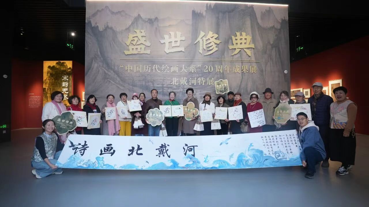 适逢重阳佳节,为弘扬中华民族敬老爱老的优良传统,丰富老年人精神文化生活。“诗画北戴河”系列活动走进“中国历代绘画大系”展览,以“重阳敬老·丹青康养”为主题,将中国古代绘画中蕴含的山水哲学、生命情怀与当代康养理念巧妙结合,为参与者打造一场融合诗、书、画、印的文化艺术体验,在笔墨山海间,感受生命的从容与艺术的温度。本次活动由秦皇岛歌华营地联合北戴河开放大学举办,深入挖掘重阳节的文化内涵,旨在让老年群体在艺术熏陶中颐养身心。活动吸引了来自北戴河开放大学、北戴河诗词学会及周边社区的众多老年朋友踊跃参与。