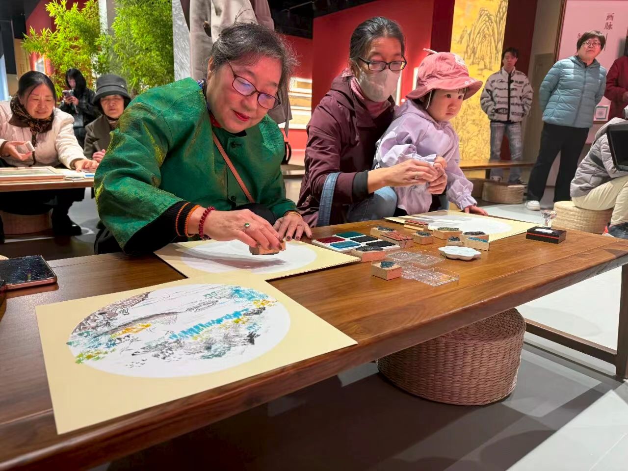 创作体验环节分为三个板块,满足不同兴趣和基础的参与者:在“零基础印章画”区域,专业老师指导参与者们用精巧的印章拓印组合,轻松创作出意趣盎然的小品画。