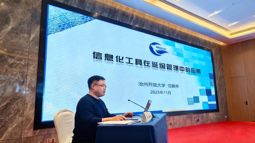 沧州开放大学教务处范鹏举老师受邀,以“信息化工具在班级管理中的应用”为题,深入阐释了在系统化支撑下,如何通过精细化、数字化的管理手段,提升班主任业务水平,从而为学生提供更及时、更贴心、更专业的支持服务。