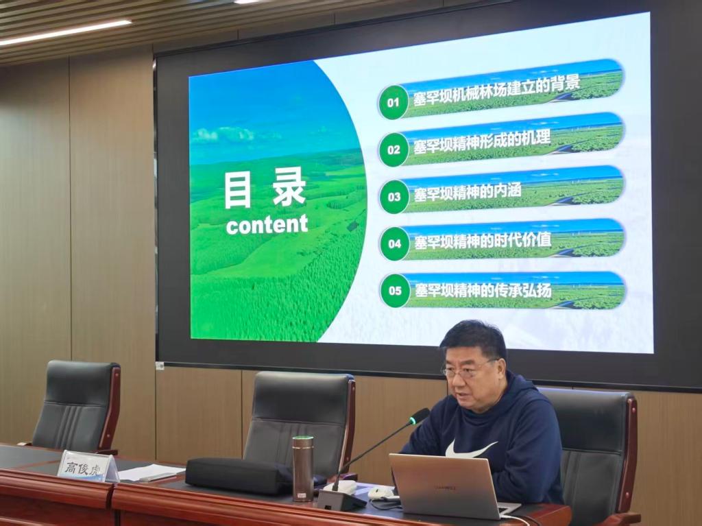 为深入学习贯彻党的二十大精神,领悟习近平生态文明思想,弘扬塞罕坝精神,承德开放大学特邀请河北民族师范学院原党委副书记、教授高俊虎开展弘扬塞罕坝精神专题讲座。讲座由党委书记韩淑珍主持。