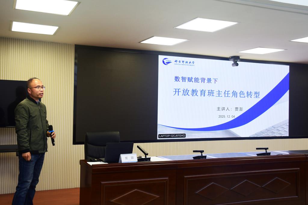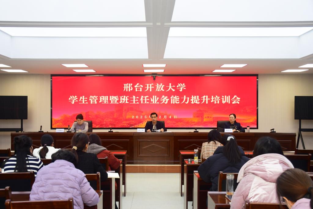 12月4日上午,邢台开放大学学生管理暨班主任业务能力提升培训分享会在六楼云教室成功举办。会议由学生服务中心主任邢计亮主持,校长高立峰、副校长杨密婷、闫丽娟出席会议,全体班主任参加。