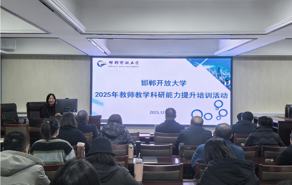 为切实提升全校教师教学科研综合能力,夯实教育教学质量根基,12月23日,邯郸开放大学开展教师教学科研能力提升专项培训,校党委书记侯希昌、校长张志涛、副校长王立涛现场指导工作。市校各专业教师现场参会,县校及校外学习中心教师通过小鱼易连平台线上同步参训。培训以论文写作与微课制作为核心内容,干货满满、实效显著。