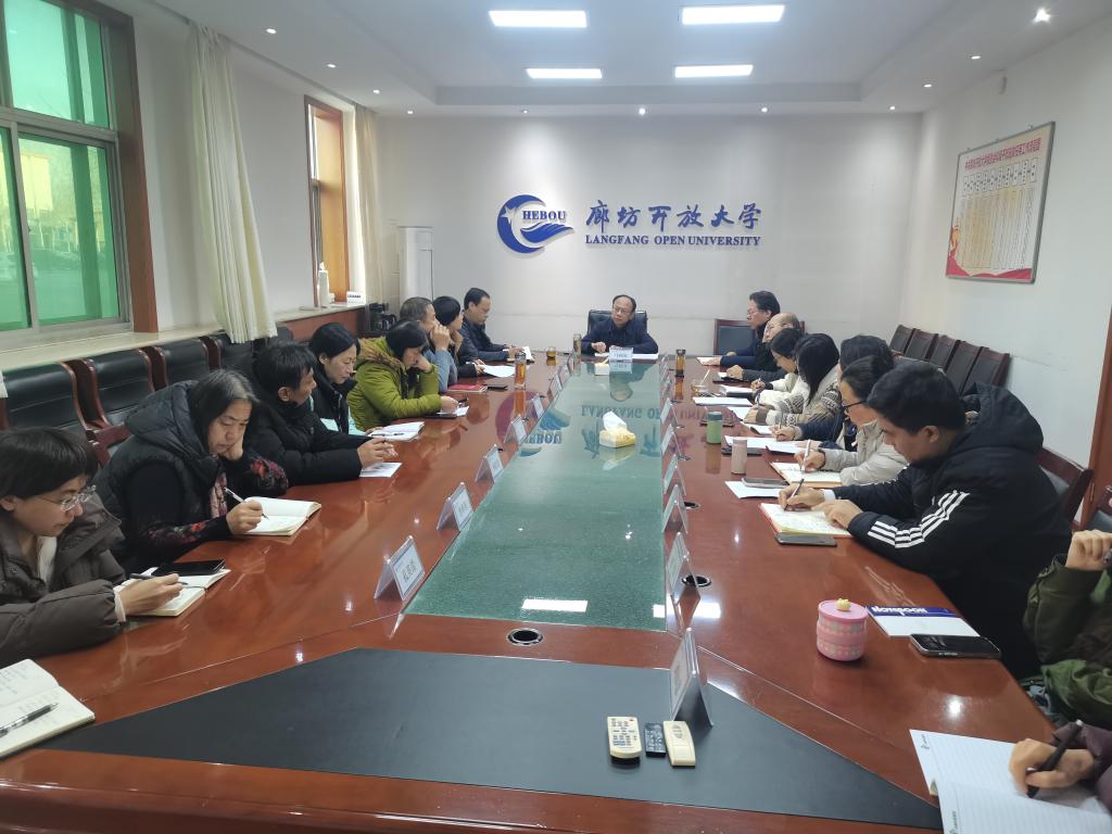 为系统总结学校2025年教育教学工作成绩,进一步深化教育教学改革,推动2026年教育教学工作起好步、开好局,1月8日上午,廊坊开放大学召开教育教学工作座谈会。学校领导班子成员出席会议,会议由廊坊开放大学党委书记马利国主持。教学科、教务科、开放教育部、社区教育中心、社会教育部、培训中心等科室参加会议。