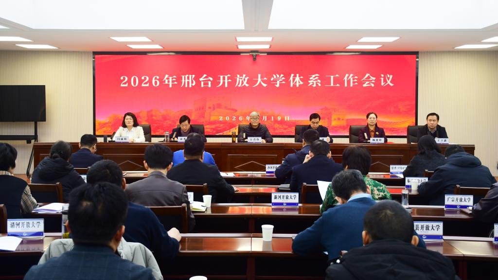 1月19日,邢台开放大学2026年体系工作会议在市校云教室召开。会议总结2025年工作成效,分析发展形势,部署2026年重点任务。市校领导班子成员、各部门主要负责人,各县级开放大学及系统外学习中心主要负责人、分管负责同志参加会议,为全市开放大学体系高质量发展凝聚共识、明确方向。