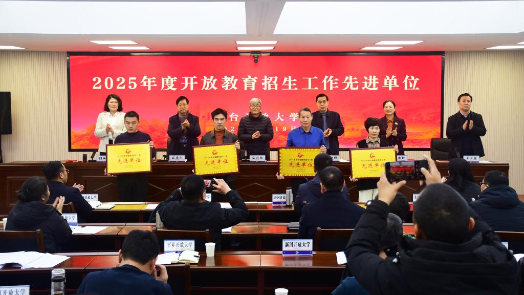 下午,邢台开放大学党委书记宗召伟主持会议。会议首先对2025年度招生工作先进单位进行了表彰。