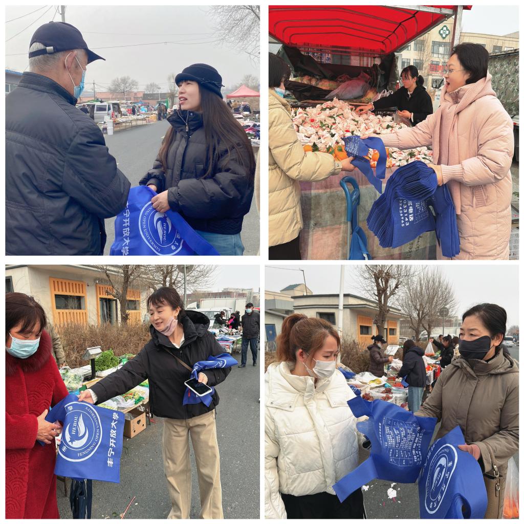 2026年3月13日上午,丰宁开放大学全体员工主动走出办公室,走进每周一次的丰宁满族自治县南三营大集,以接地气、暖民心的“服务零距离”的姿态把实用的学历提升与温暖关怀送到乡亲们身边。