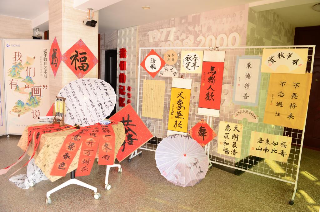 活动现场同步设立书画作品展区,展出百余件学员原创彩铅画与书法作品。作品内容丰富,涵盖祖国山河、诗意生活、家国情怀等多个主题,笔触细腻、构图新颖,既有传统功力,又具时代气息。一幅幅作品不仅是技艺的体现,更是老年学员热爱生活、积极向上的精神写照。
